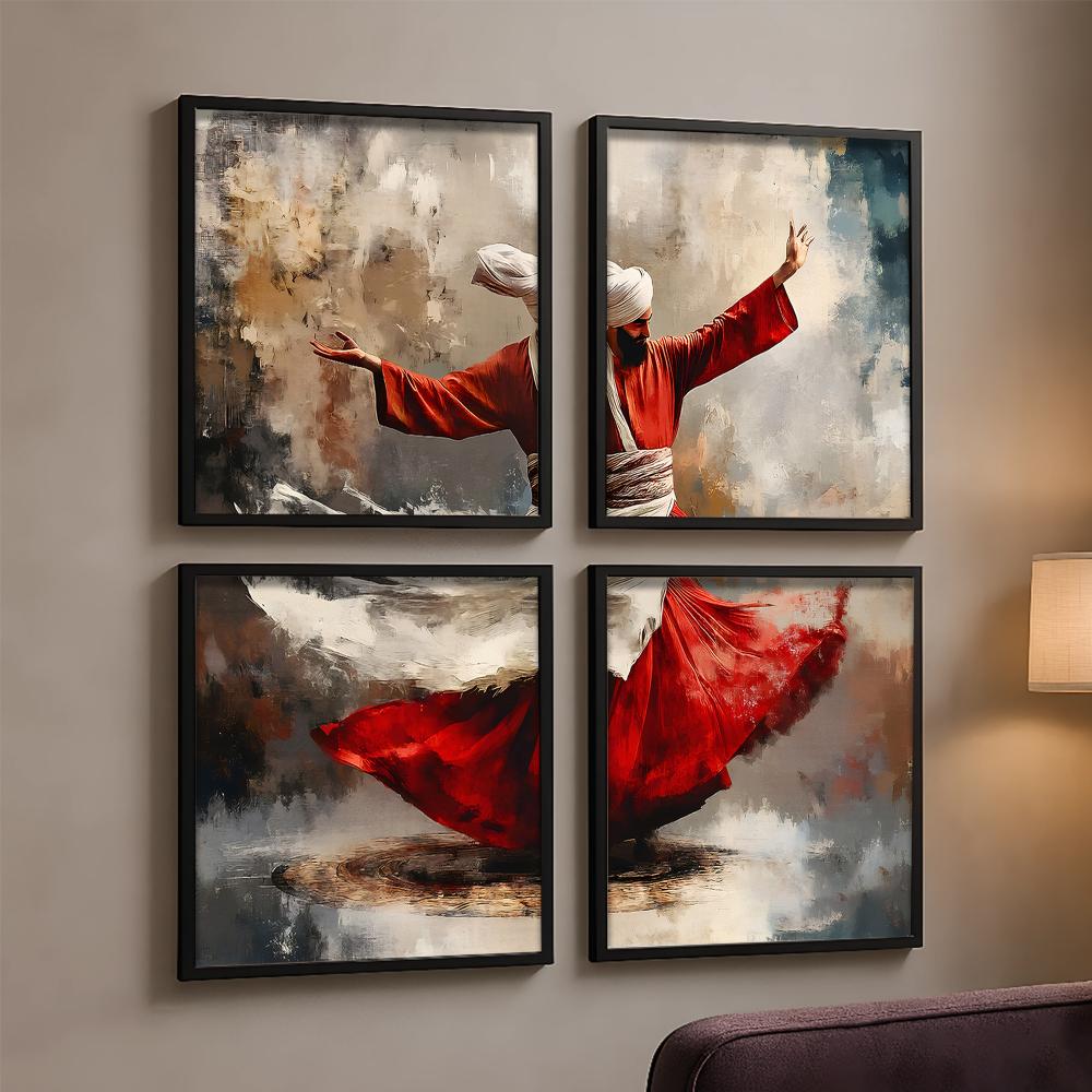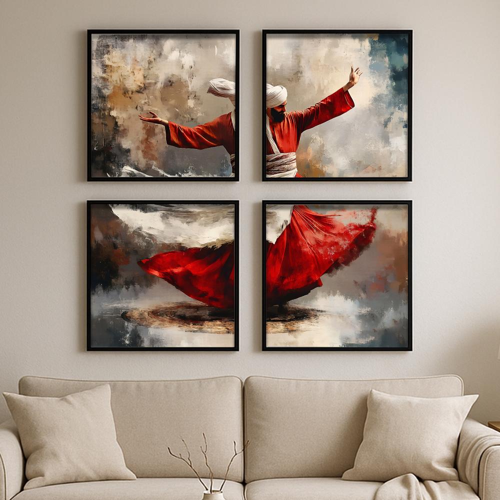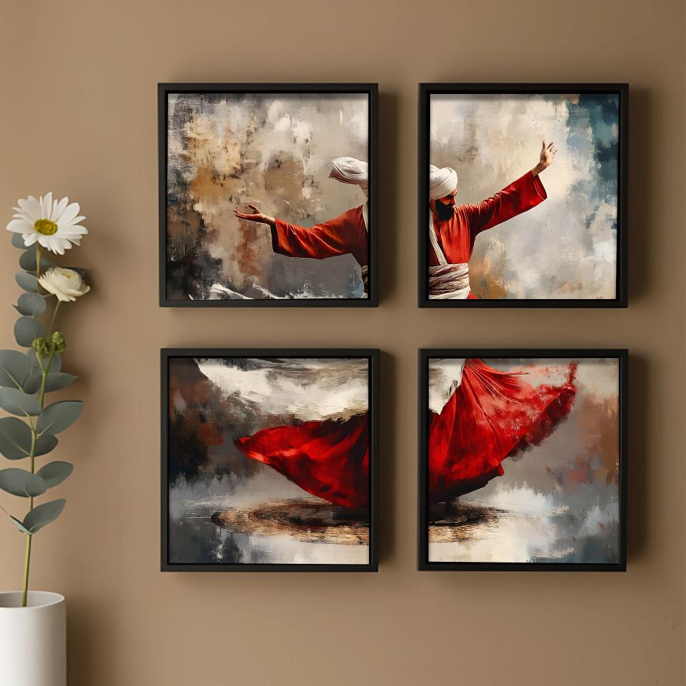 أربع لوحات قماشية مع برواز اسود مجوف بتصميم فن التراث العربي