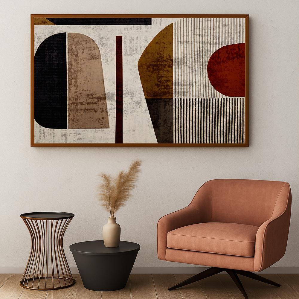 استلهم أجواء الفن الحر والجريء مع هذه اللوحة البوهيمية الفاخرة، التي تمزج بين الأشكال الهندسية والخطوط العفوية بتناسق لوني أنيق. تُعد هذه القطعة الفنية خيارًا مثاليًا لعشاق الديكورات العصرية، وتضفي لمسة من العمق والتميز على أي مساحة توضع فيها. اطلبها الآن!