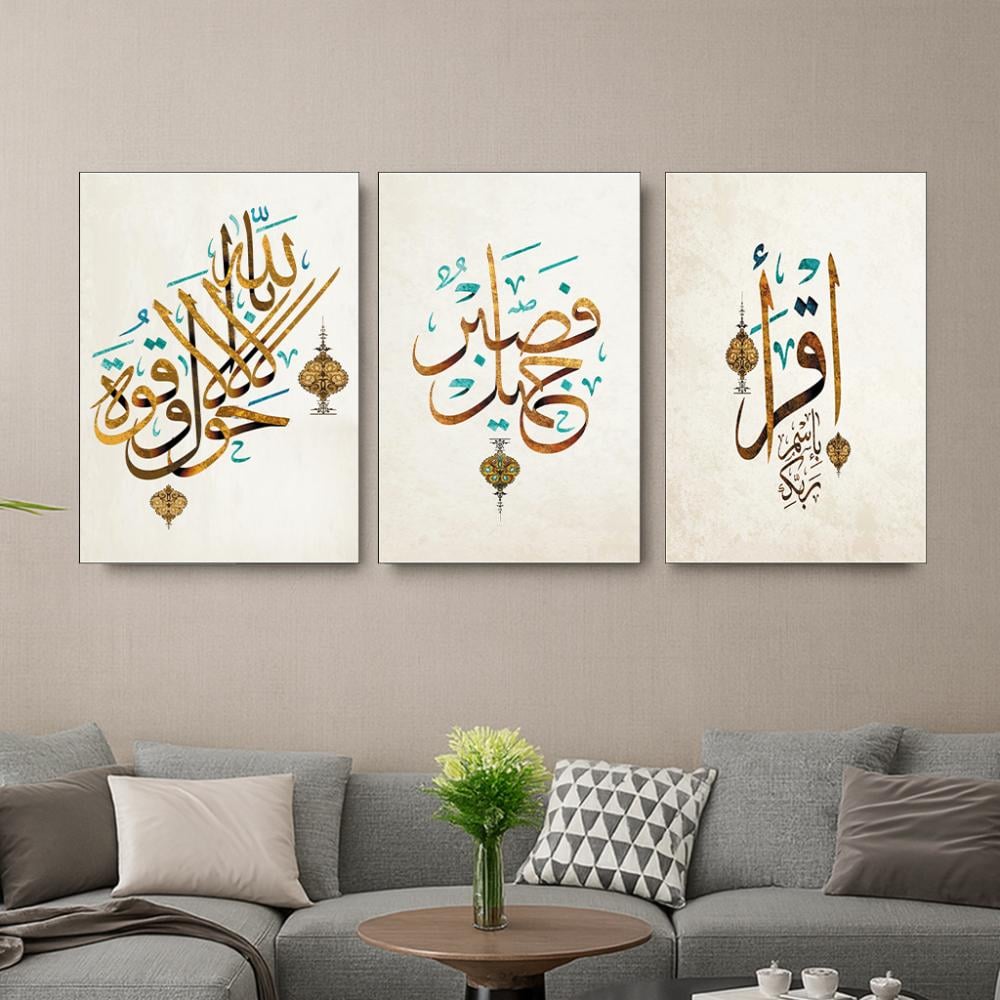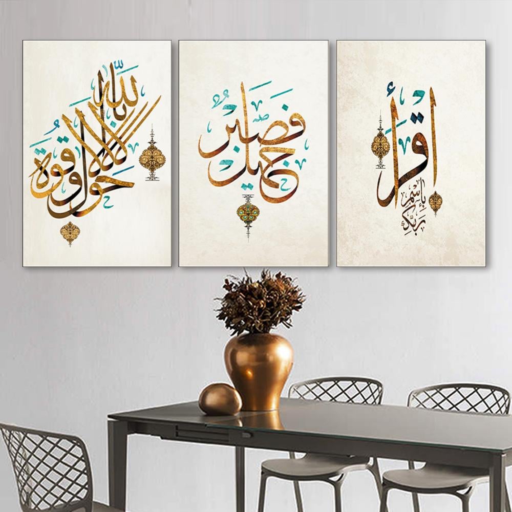 لوحة خشبية ثلاث قطع بتصميم إسلامي