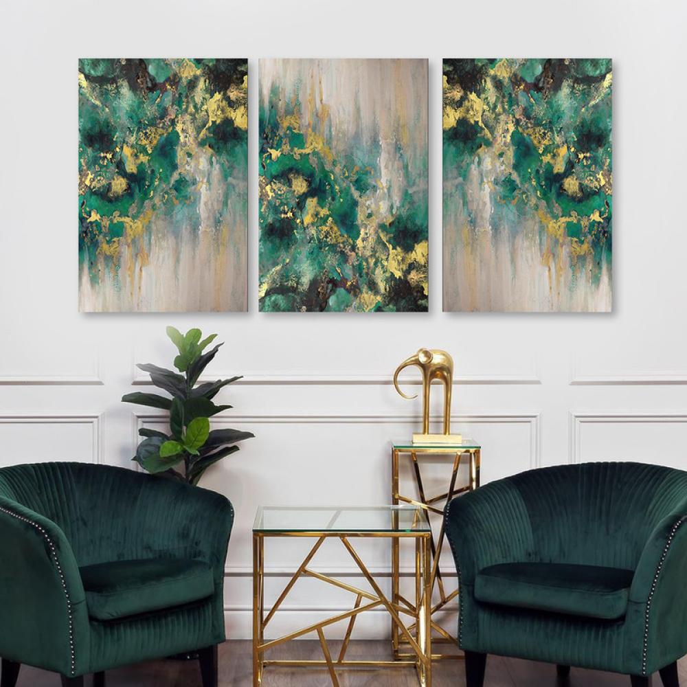 لوحات خشبية فاخرة بتصميم تجريدي غني بالألوان الخضراء والذهبية التي تنساب بانسجام فني راقٍ، تضيف بعدًا بصريًا آسرًا يلفت الأنظار ويُبرز رقي المساحة. اطلبها الآن من متجر 4 جدران!