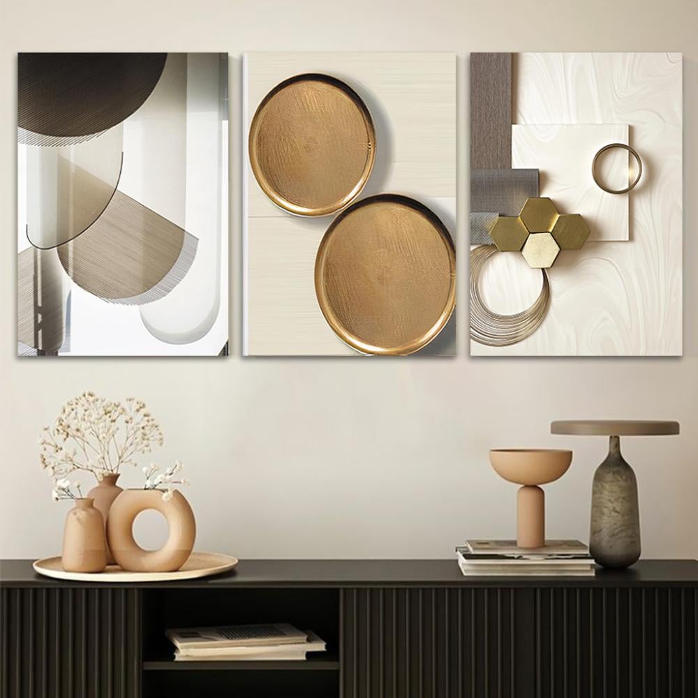 طقم لوحات خشبية فنية بتصميم تجريدي، تجمع بين التفاصيل الدقيقة والزخارف الفنية الهندسية. تبرز تدرجات الألوان لتضفي تأثيرًا بصريًا جذابًا وتعزز من جمال الديكور الداخلي، كما تتميز بأسلوب حديث يتماشى مع الديكورات المعاصرة، اطلبها الآن!