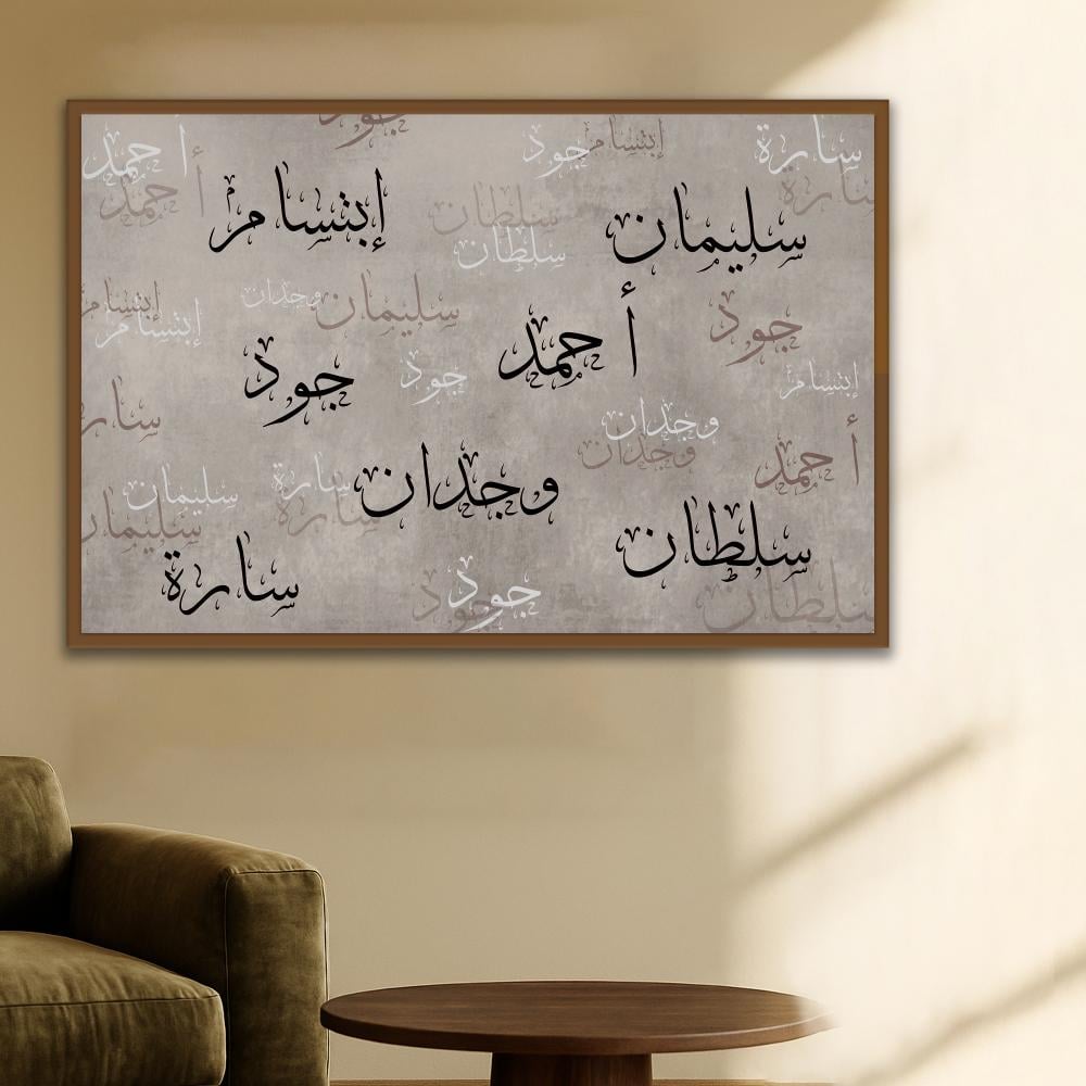 وصف المنتج :لوحة فنية بتصميم أسماء فاخرة.تجمع بين التفاصيل الدقيقة و الزخارف الفنية.تبرز تدرجات الألوان لتضفي تأثيرًا بصريًا جذابًا. تعزز من جمال الدي...