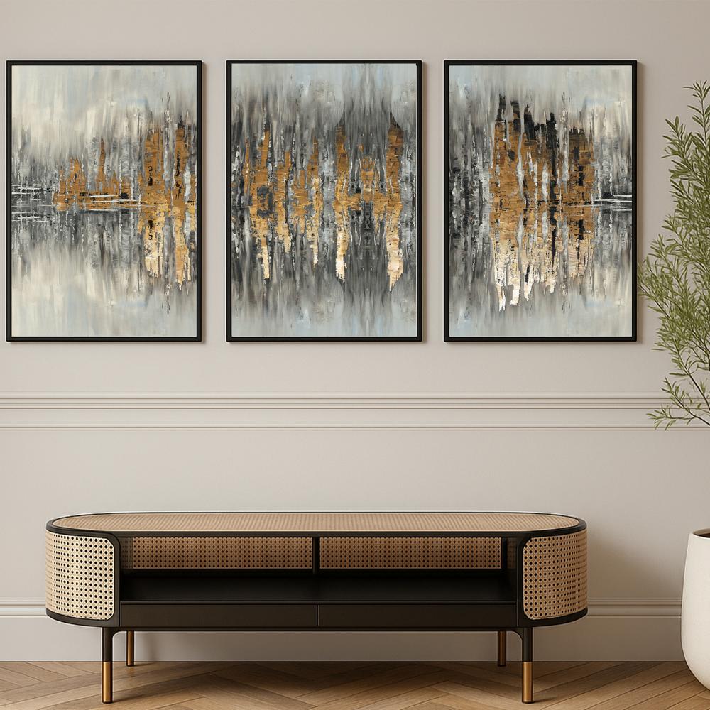 تقدم لك هذه الثلاث لوحات القماشية المطبوعة بتصميم تجريدي لمسة فنية فاخرة تجمع بين التفاصيل الدقيقة والزخارف الفنية المدهشة. تبرز تدرجات الألوان التي تضفي تأثيرًا بصريًا جذابًا على أي مساحة، مما يعزز من جمال الديكور الداخلي. تتميز هذه اللوحات القماشية بأسلوب حديث يتماشى مع الديكورات المعاصرة، وتضيف الفخامة والإبداع إلى مساحاتك، مما يجعلها تحفة فنية متألقة في أي زاوية توضع فيها.